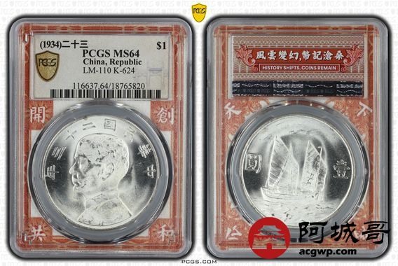 Lot:18 车轮曝光 二十三年船洋 PCGS MS64