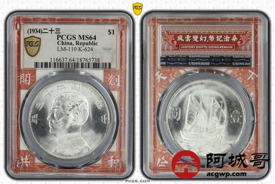 Lot:17 车轮曝光 二十三年船洋 PCGS MS64