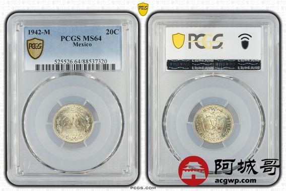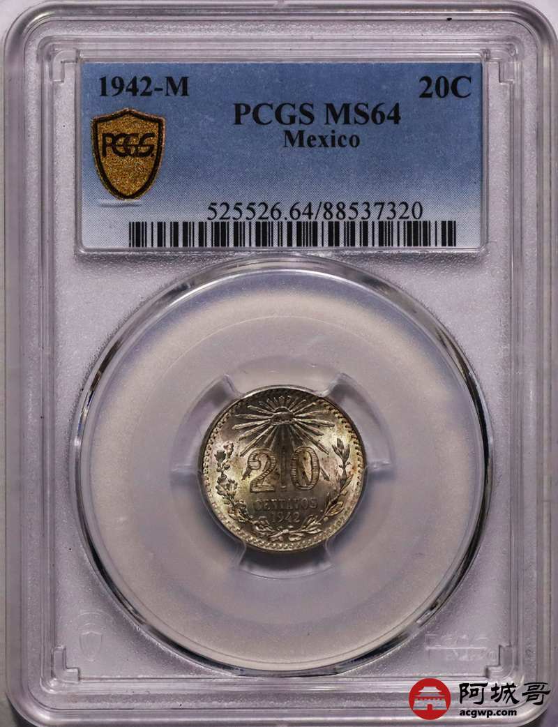 Lot:28 1942M墨西哥鹰洋20C PCGS MS64