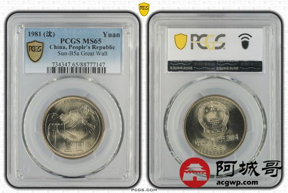 Lot:33 1981年长城币壹圆 PCGS MS65