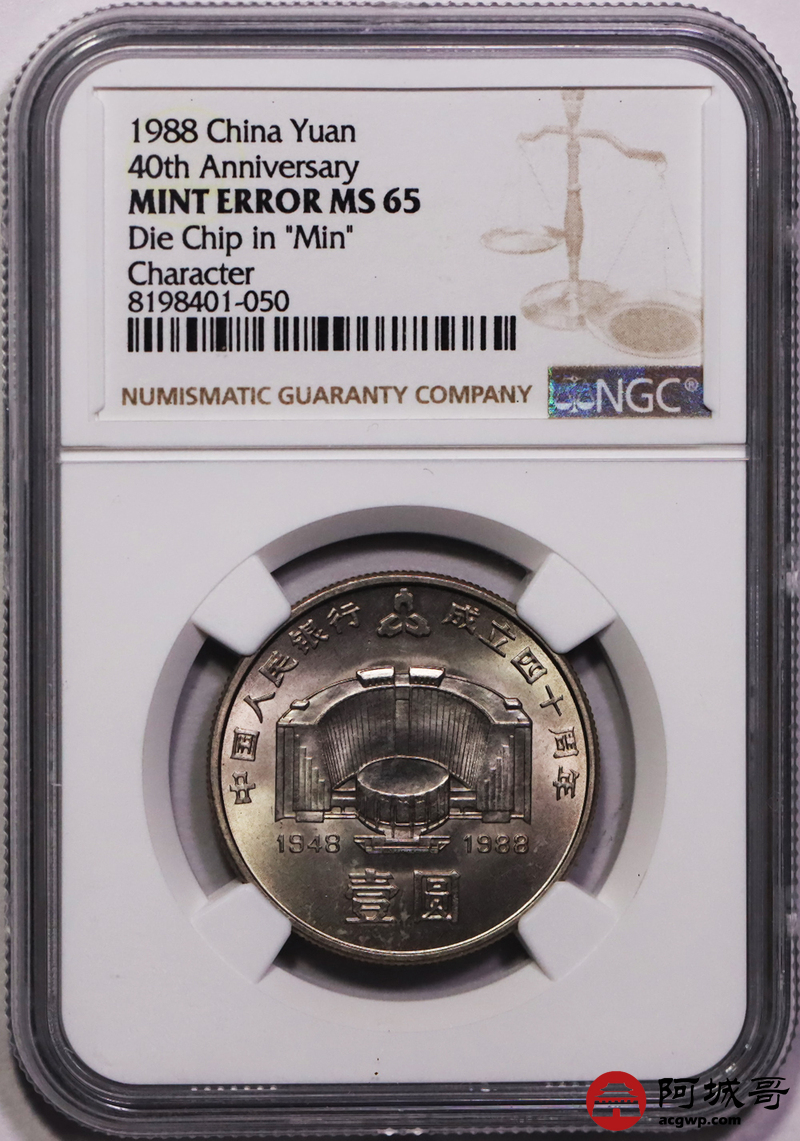 Lot:39 1988建行成立四十周年纪念币 错版 NGC MS65