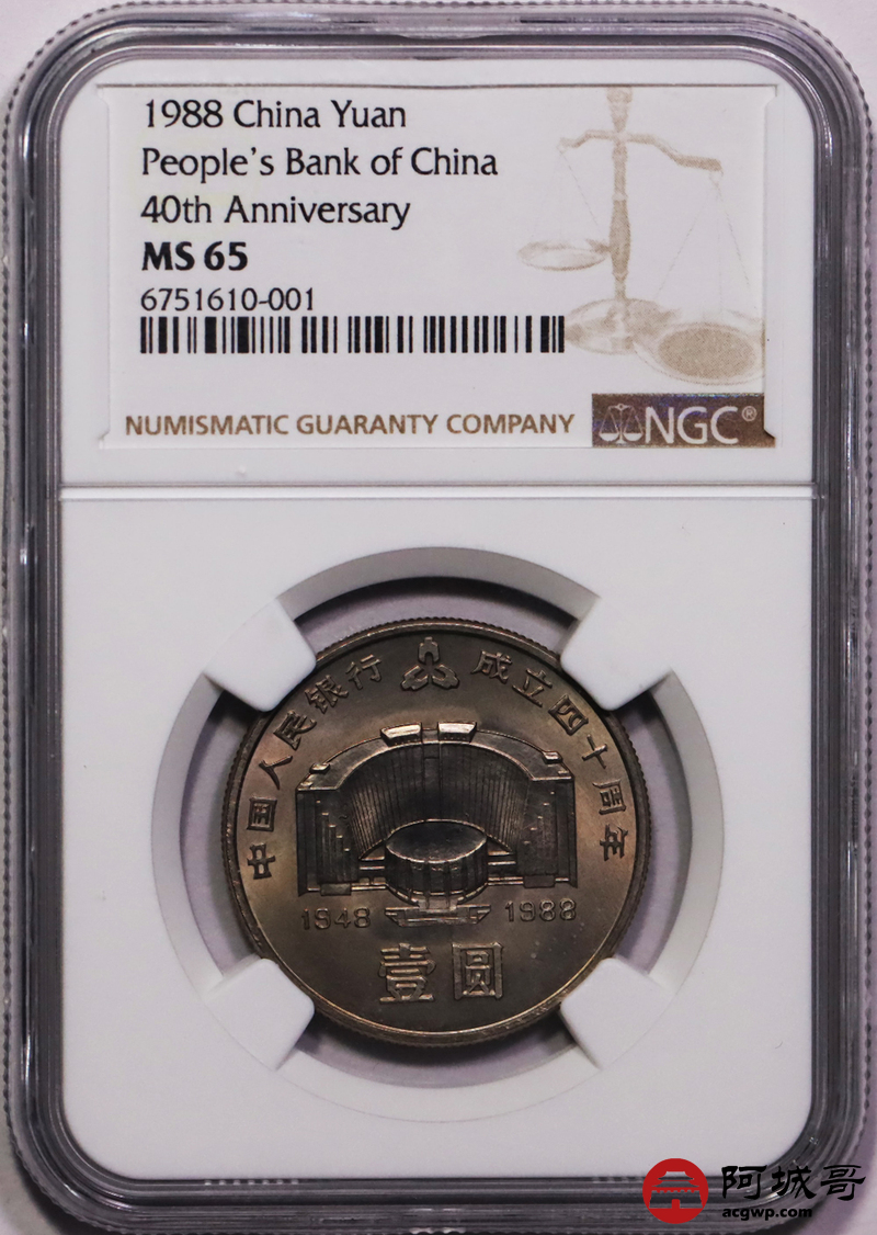 Lot:38 1988年建行四十周年纪念币 NGC MS6