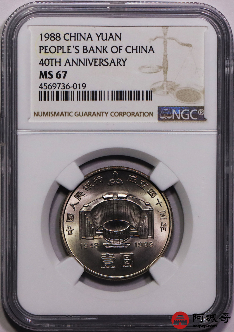 Lot:35 1988年建行四十周年纪念币 NGC MS67
