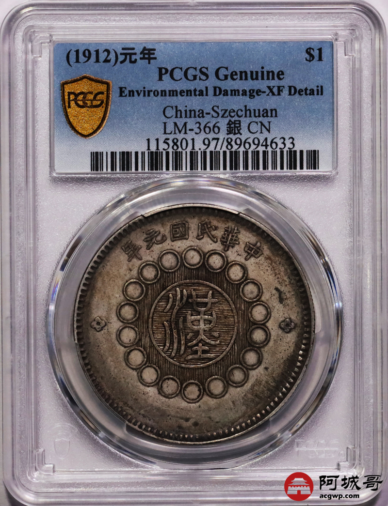 Lot:1 深打老包浆 四川军政府壹圆 PCGS XF