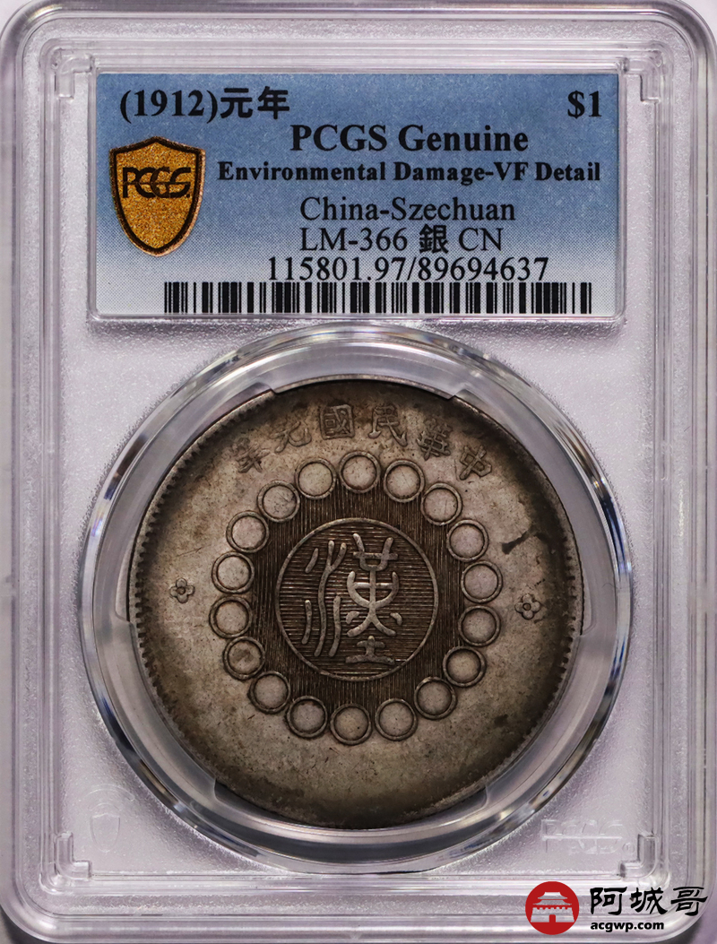 Lot:2 原味老包浆 四川军政府壹圆 PCGS VF