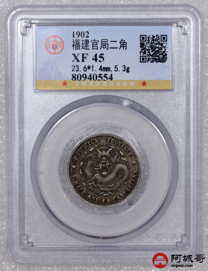 Lot:20 原味老包浆 福建光绪一钱四分四厘 公博 XF45