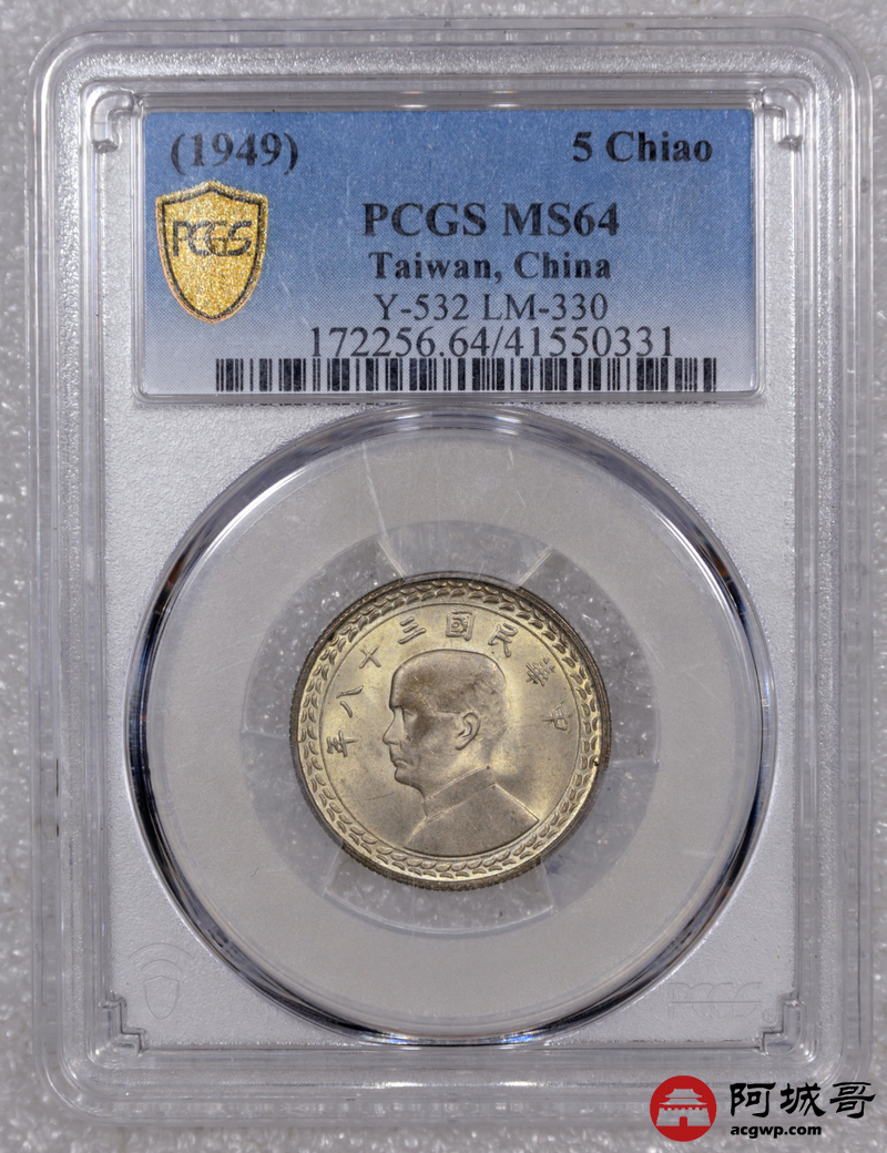 Lot:25 原光 民国十八年广东孙像贰豪 PCGS MS64