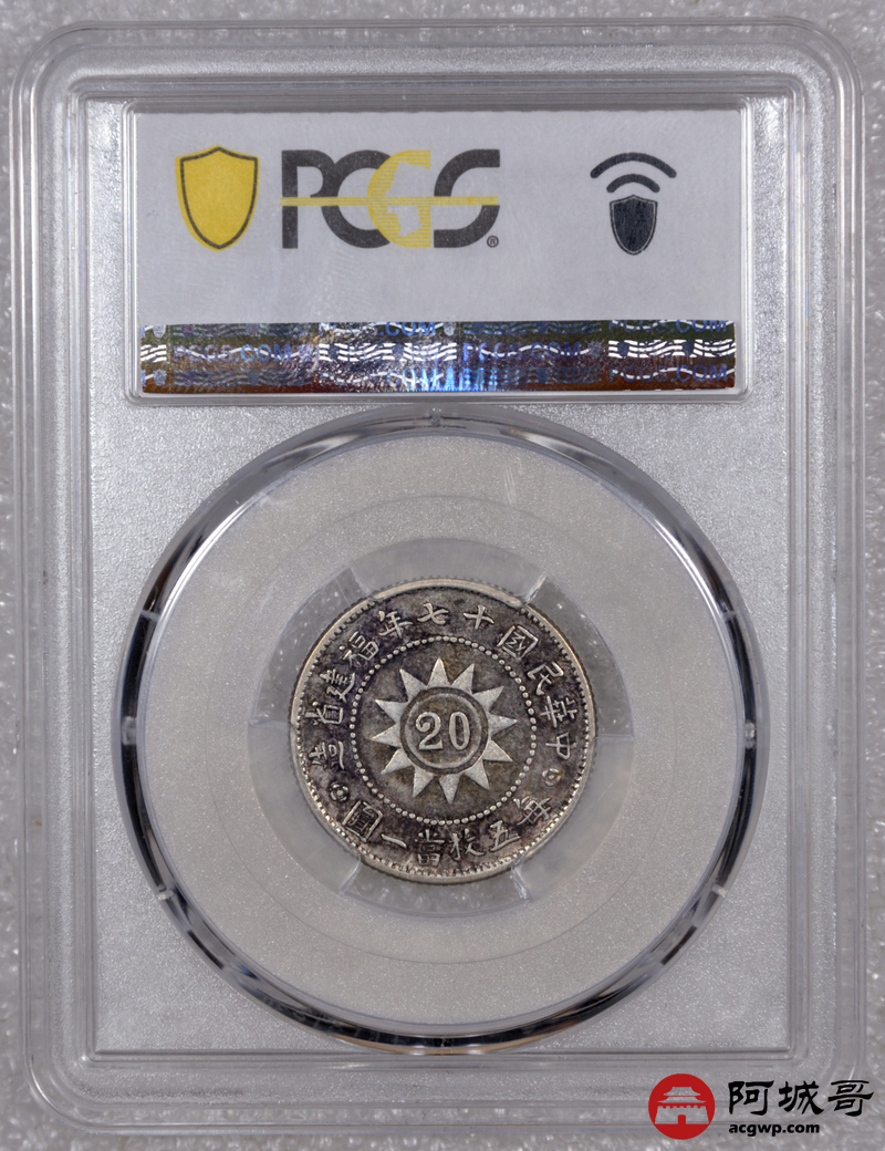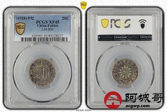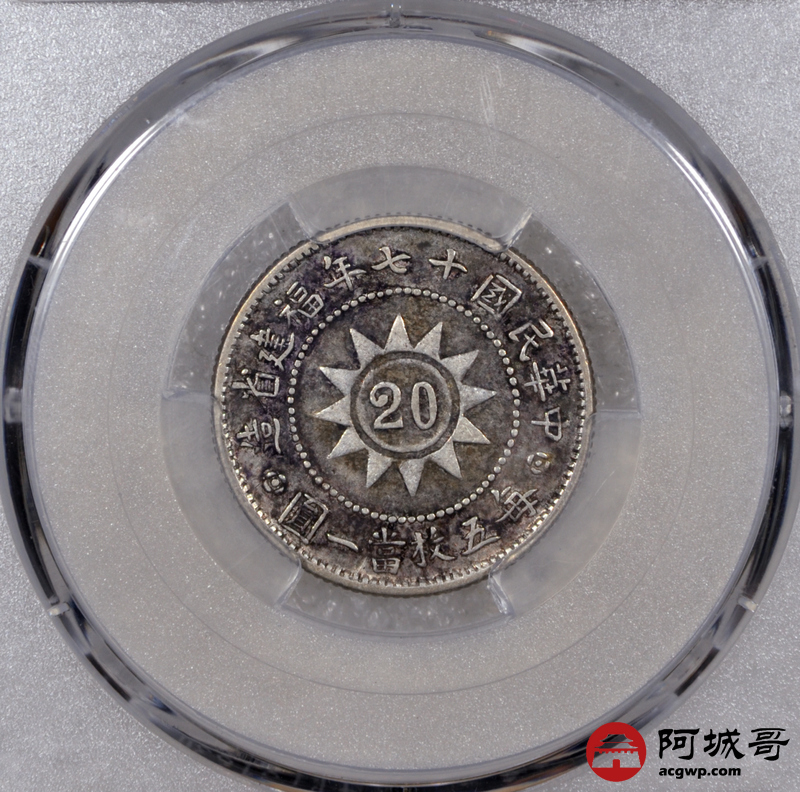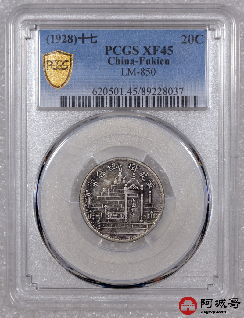 Lot:23 原味老包浆民国十七年黄花岗贰角 PCGS XF45