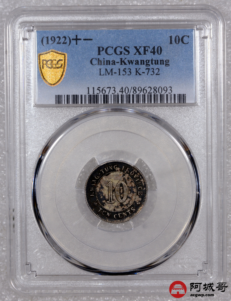 Lot:8 原味酱彩 民国十一年广东壹豪 PCGS XF40
