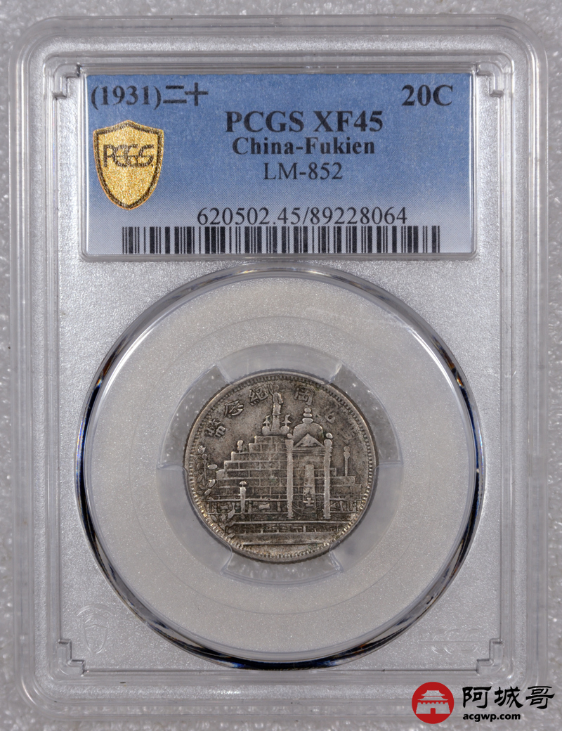 Lot:8 原味老包浆 民国二十年黄花岗贰角 PCGS XF45