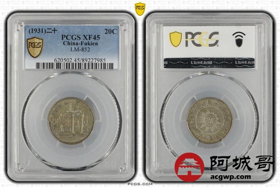 Lot:36 原味老包浆 民国二十年黄花岗贰角 PCGS XF45