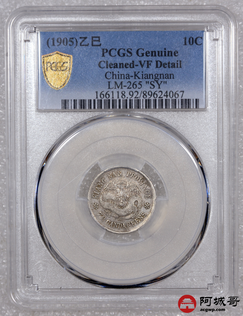 Lot:34 深打 江南乙巳七分二厘 PCGS VF
