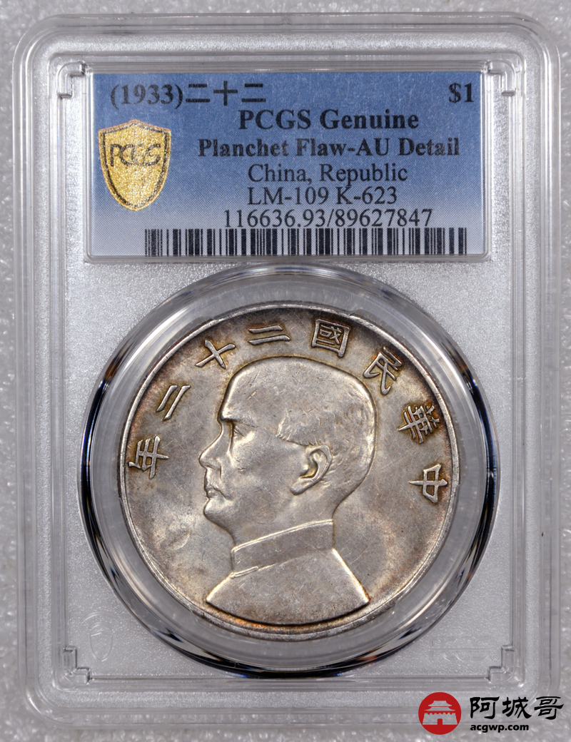 Lot:16 淡彩转光 二十二年船洋PCGS AU