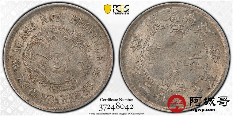 Lot:25 黄油转光 江南宣统七分二厘 PCGS AU55