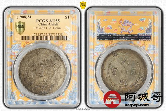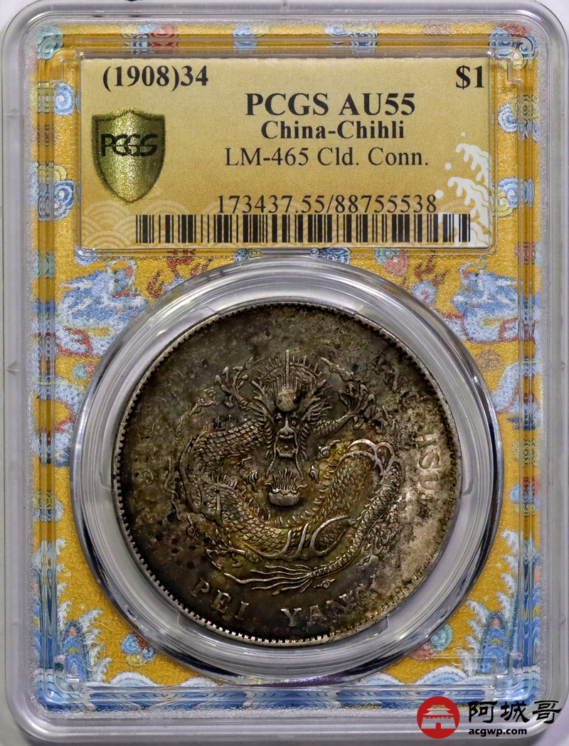 Lot:12 原光 五彩 高额满鳞 北洋34年七钱二分 PCGS AU55
