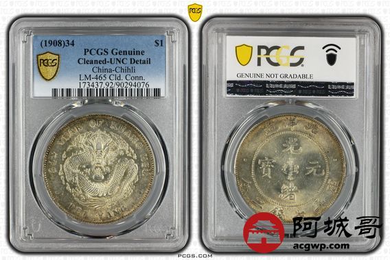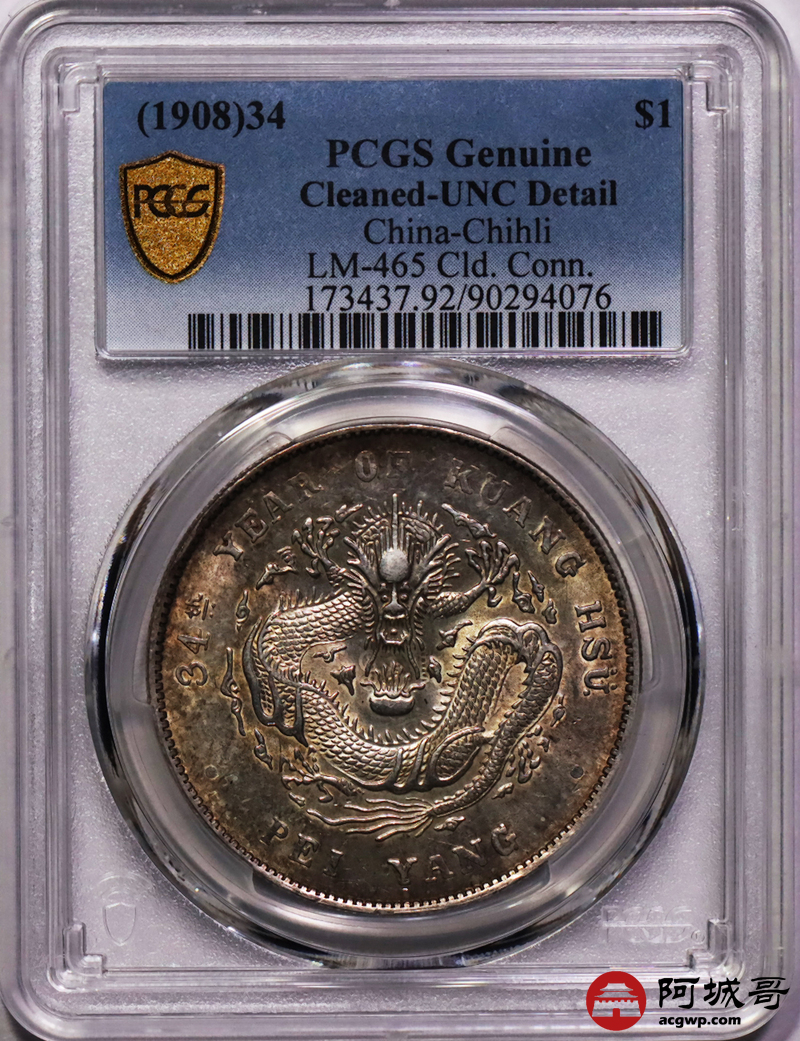 Lot:9 黄油原光 北洋34七钱二分 PCGS UNC