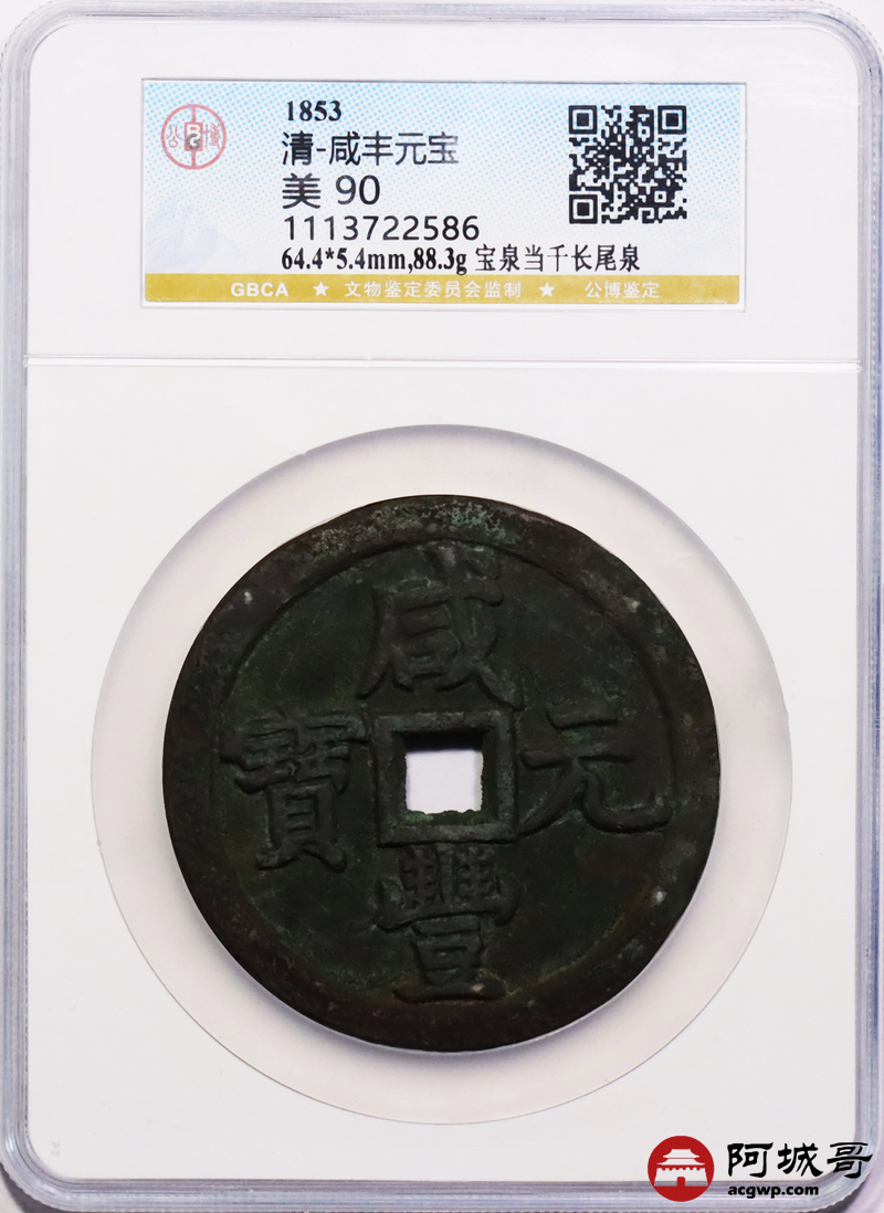 Lot:29 清-咸丰元宝 宝泉当千长尾泉 公博 美90