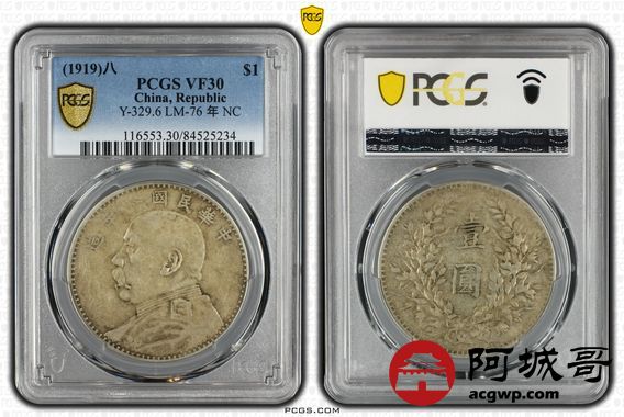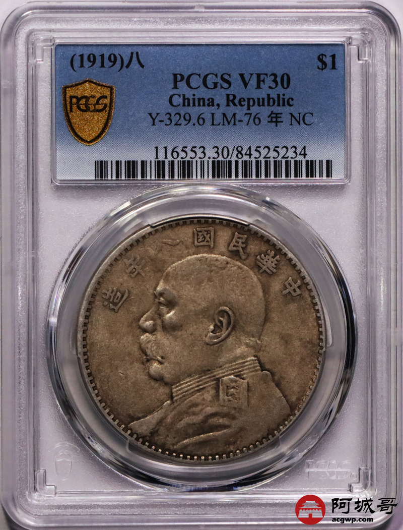 Lot:20 原味老包浆 八年大头壹圆 PCG VF30