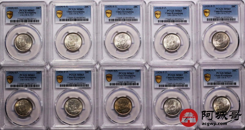 Lot:24 原光 民国十八年孙像贰豪 PCGS MS63 十枚