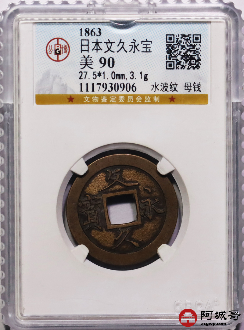 Lot:42 日本文久永宝 水波文 母钱 公博 美90