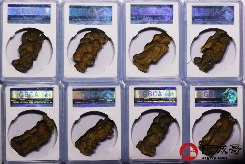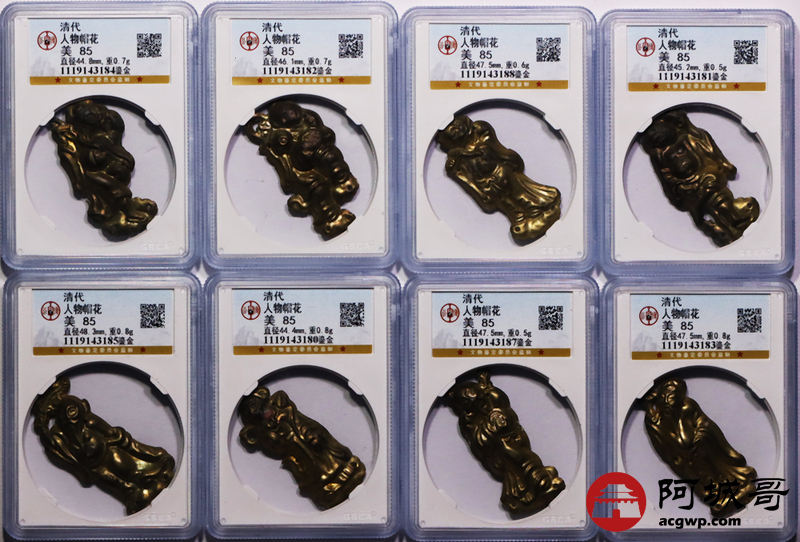 Lot:58 清代鎏金人物帽花 公博美85八枚一枚盒裂