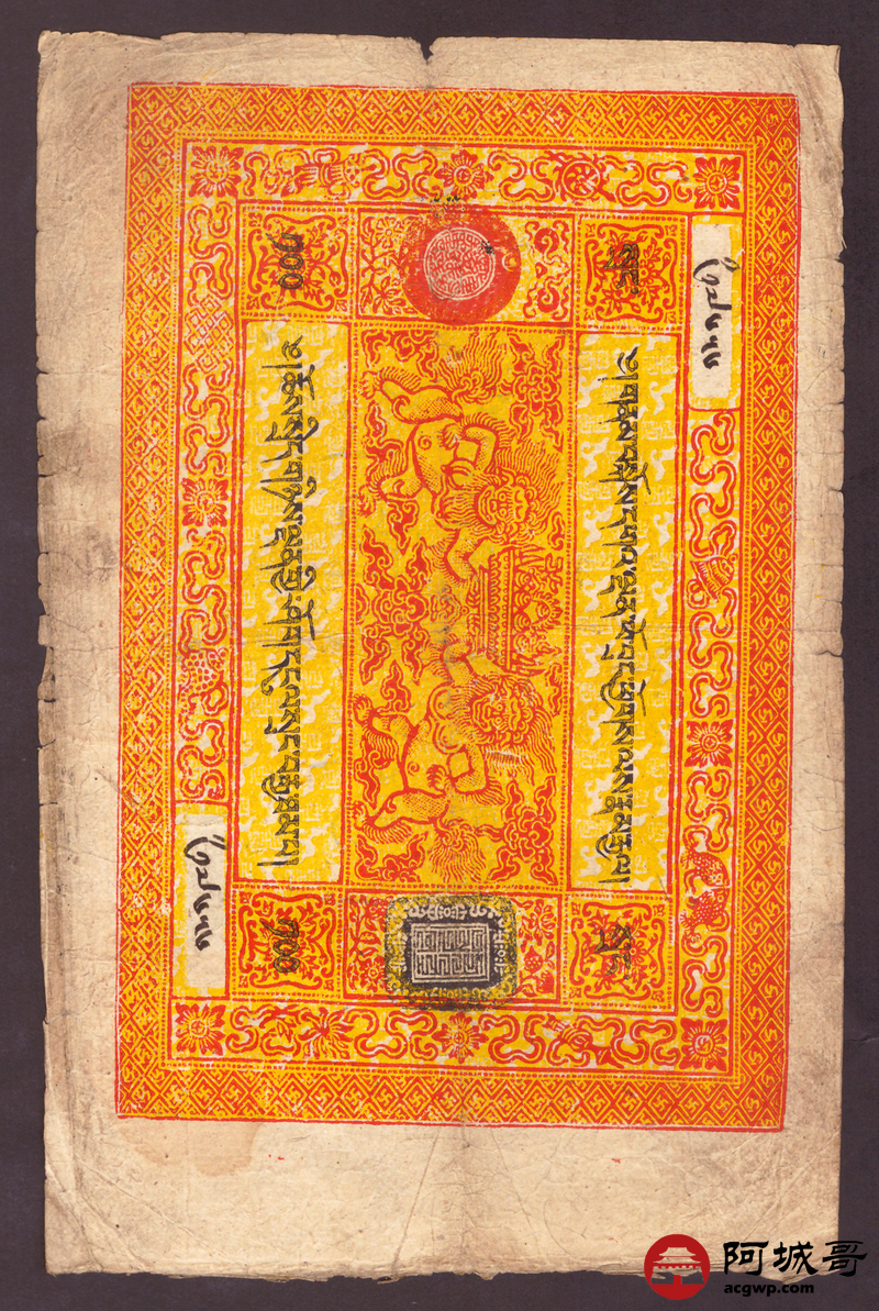 Lot:78 西藏老纸币 100两 原汁原味