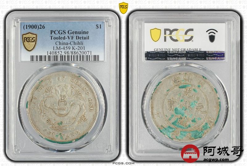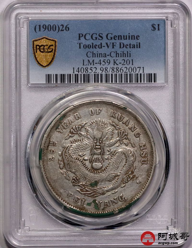 Lot:15 a原味老包浆 北洋26七钱二分 PCGS VF