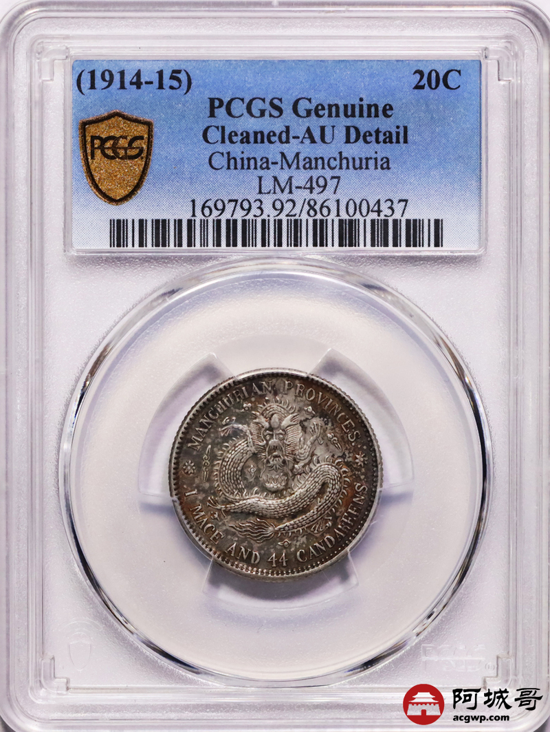 Lot:12 原味五彩 东三省 宣统 两角 PCGS AU
