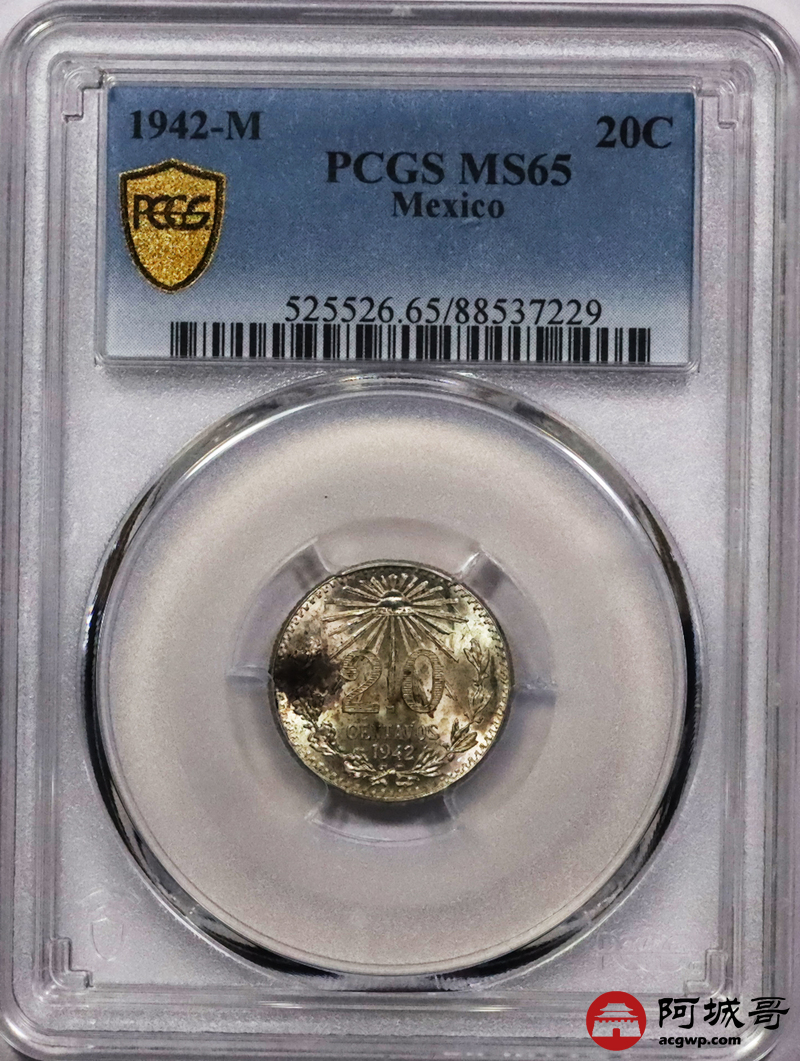Lot:39 黄油原光1942M墨西哥鹰洋 PCGS MS65