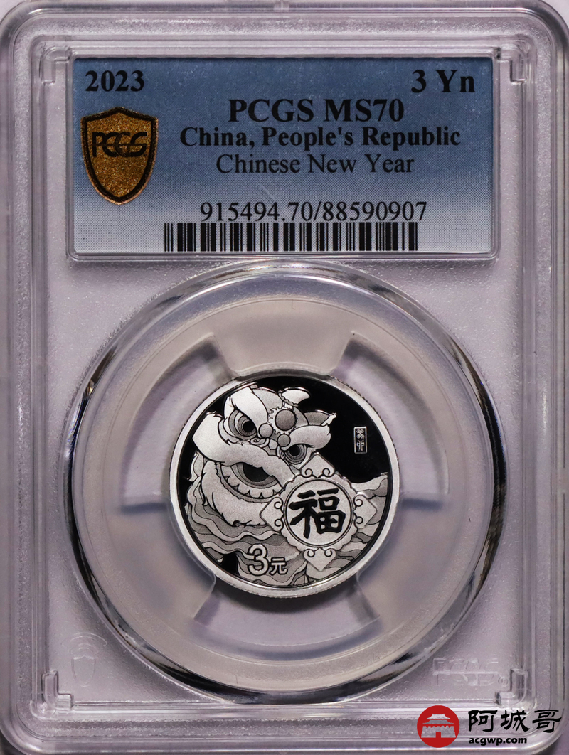 Lot:59 2023年福字3元银币 PCGS MS70