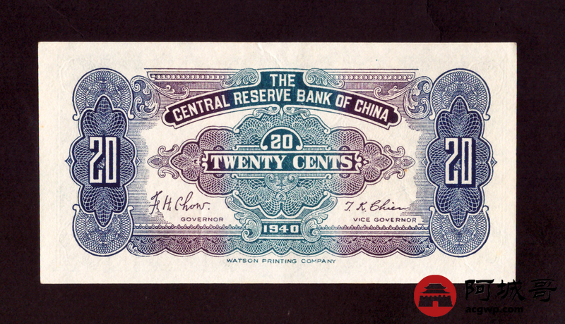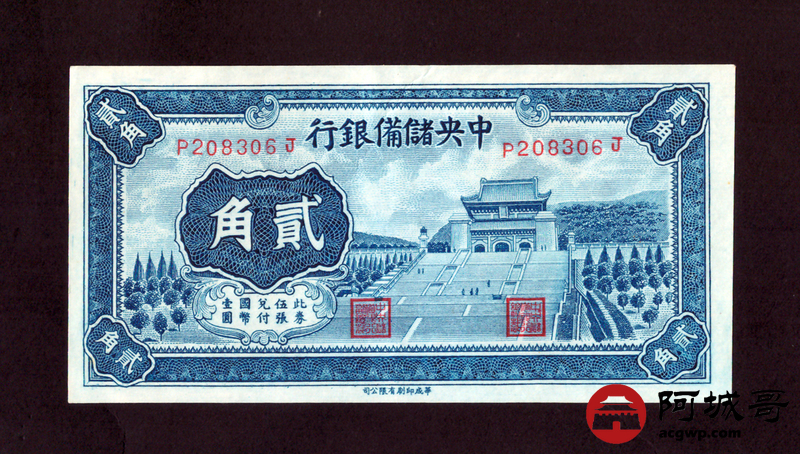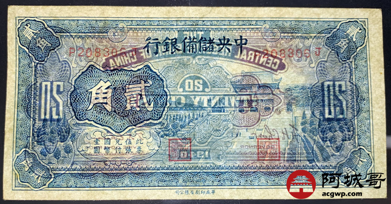 Lot:76 1940年 中央储备银行 贰角 原票9成新