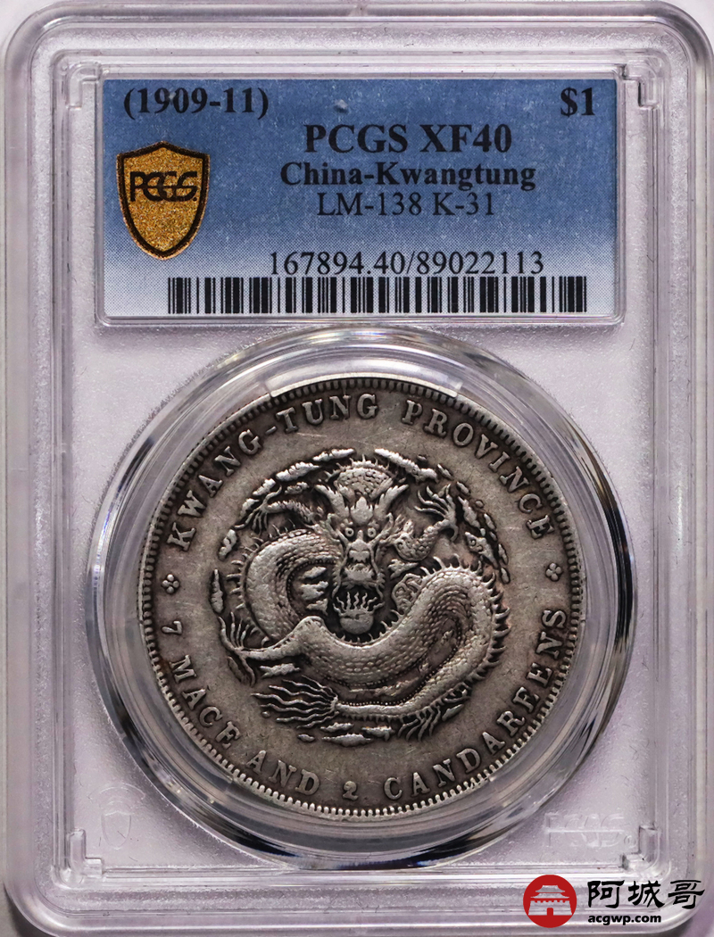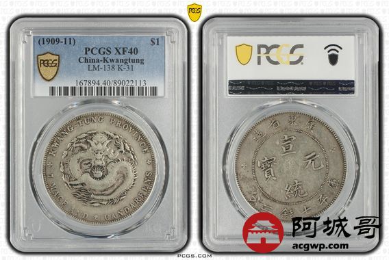 Lot:13 原味老包浆广东宣统七钱二分 PCGS XF40