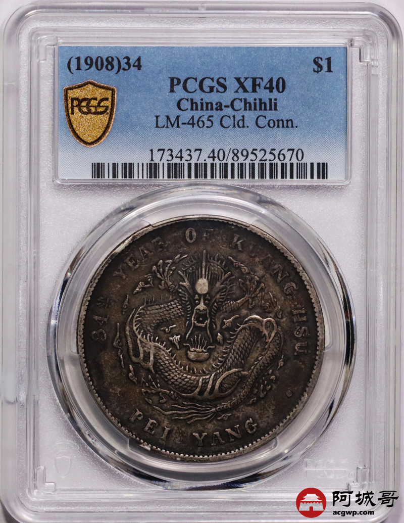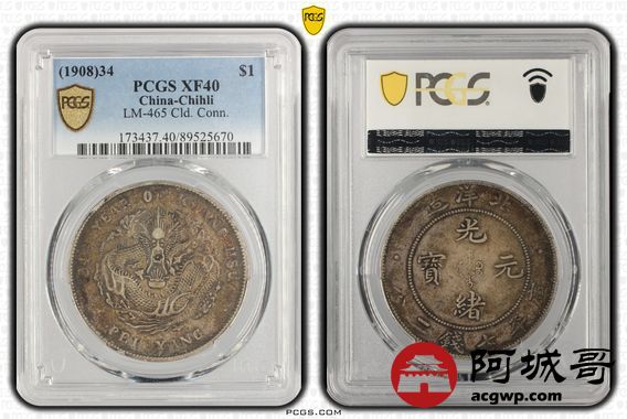 Lot:15 原味酱彩 北洋34七钱二分 PCGS XF40