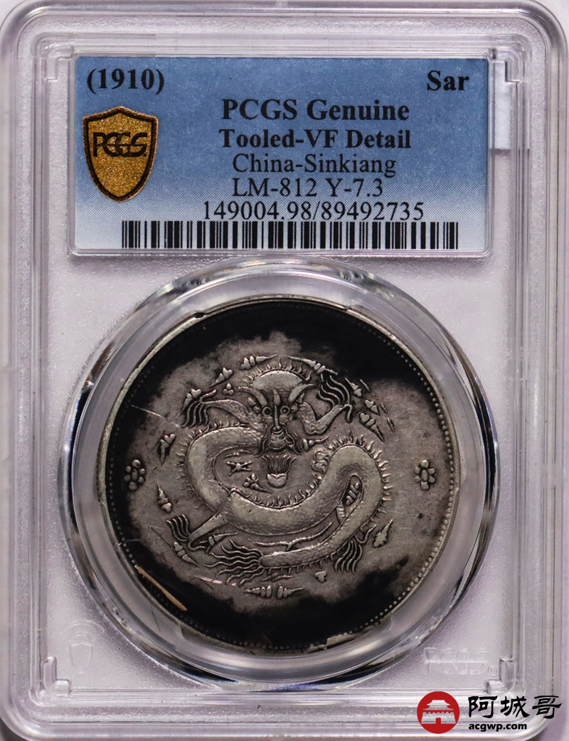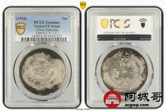 Lot:30 原味老包浆 新疆饷银一两字回文 PCGS VF