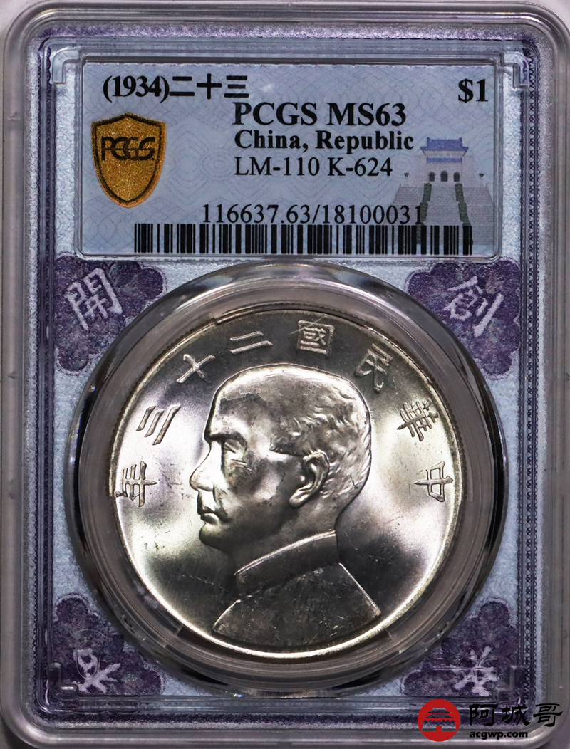 Lot:4 车轮转光 二十三年船洋 PCGS MS63