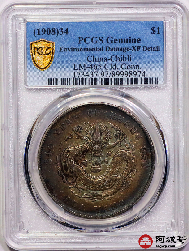 Lot:19 北洋34年 百年传世老五彩包浆味道一流PCGS XF
