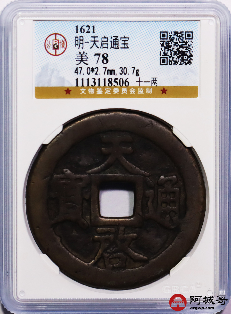 Lot:25 明-天启通宝十一两 公博 美78