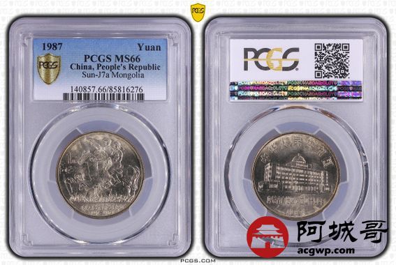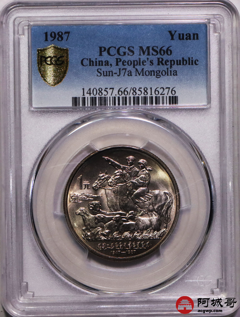 Lot:31 1987年内蒙古自治区成立四十周年纪念币 PCGS MS66