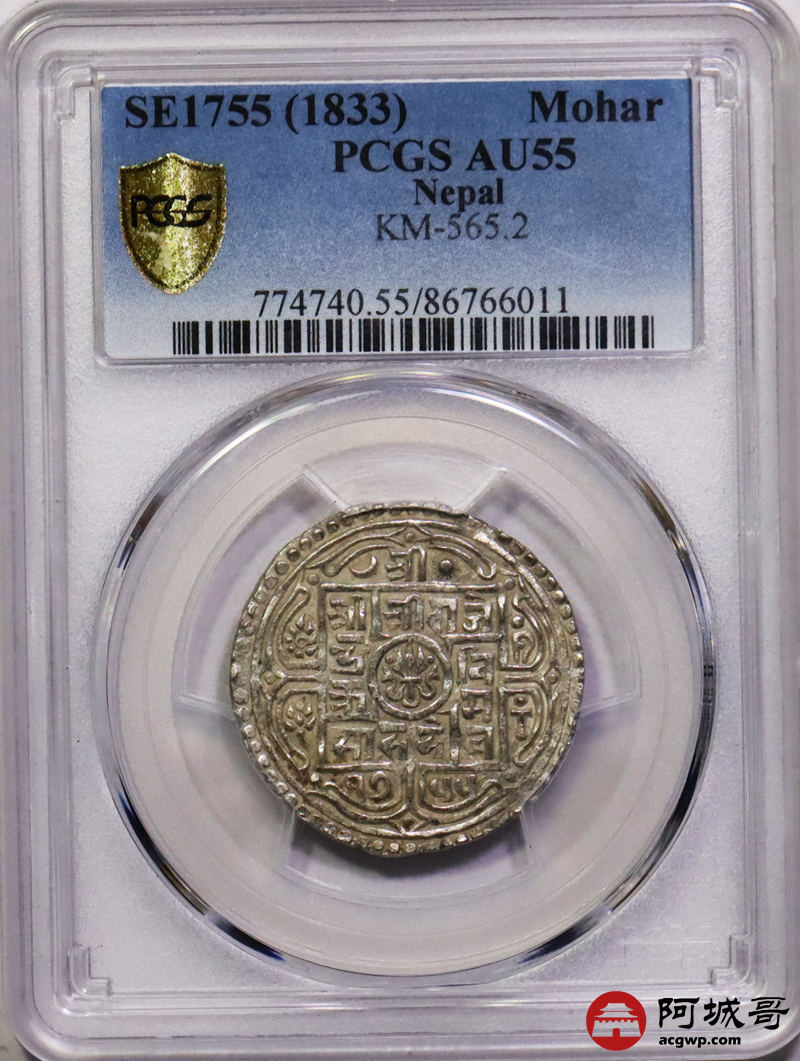 Lot:35 1833年尼泊尔萨哈王朝张嘎银币 PCGS AU55