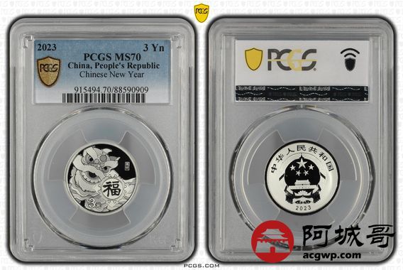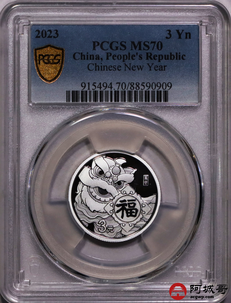 Lot:40 2023年福字3元银币 PCGS MS70