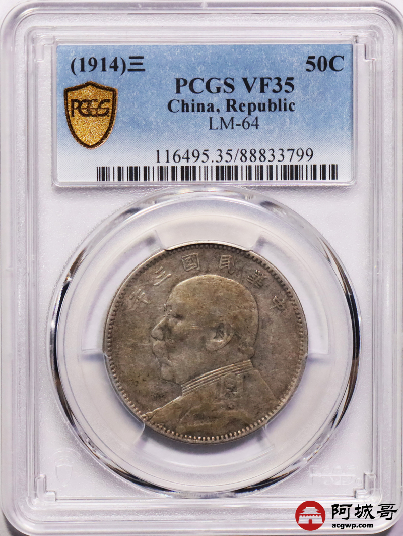 Lot:17 原汁原味 民国三年大头中元 PCGS VF35
