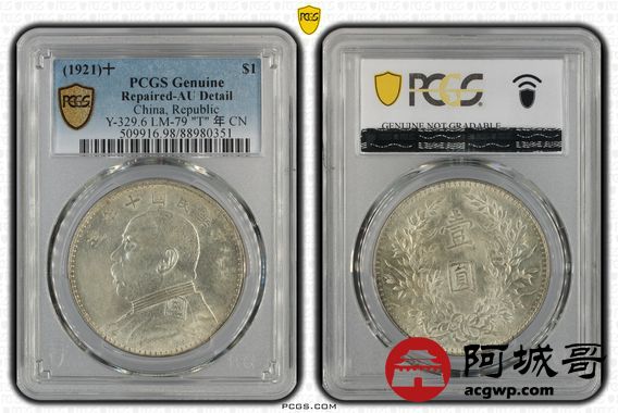 Lot:4 深打 转光 十年大头壹圆 PCGS AU