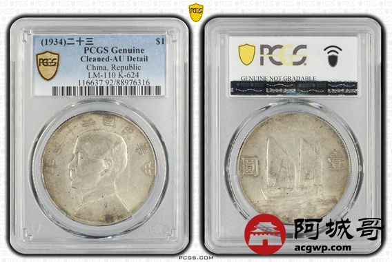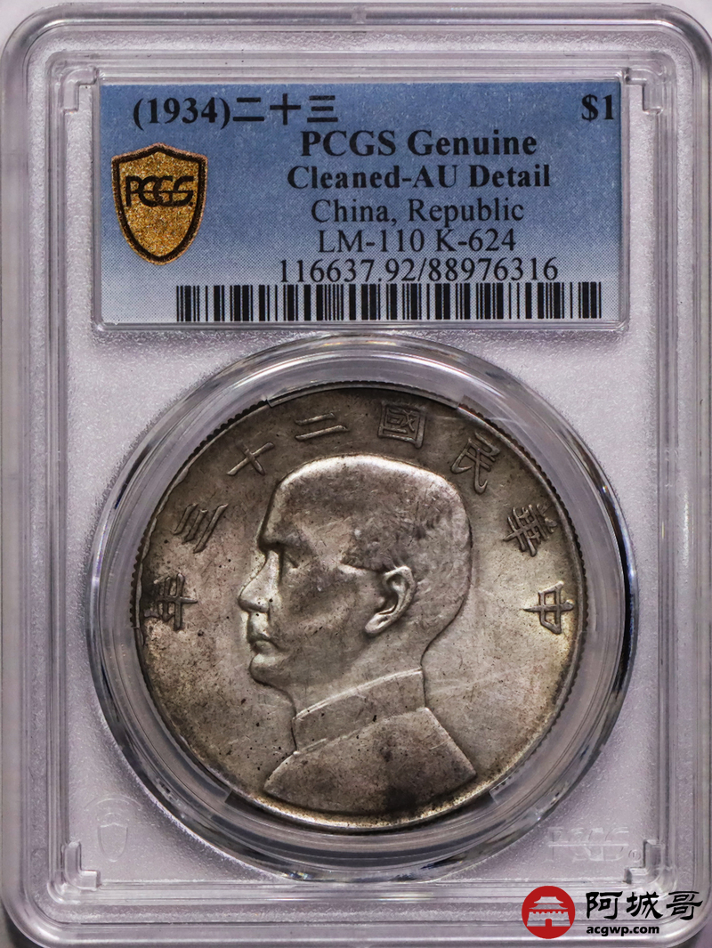 Lot:3 黄油光 民国23年船洋壹圆 PCGS AU