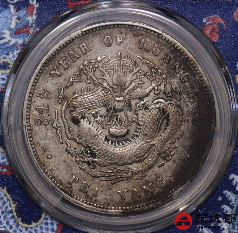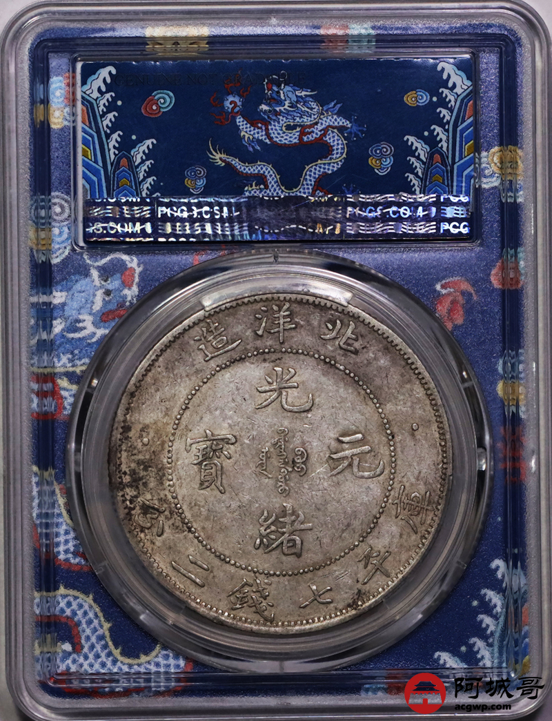 Lot:23 原味老包浆 北洋34七钱二分 大卷三高脚四 PCGS XF