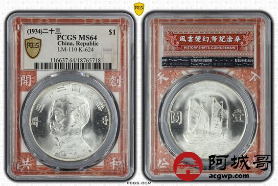 Lot:15 曝转光 二十三年船洋 PCGS MS64