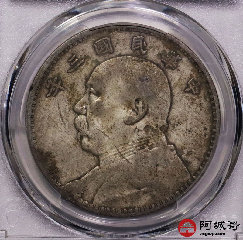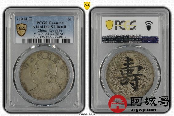 Lot:8 原味老包浆 三年大头 寿字墨戳 PCGS XF