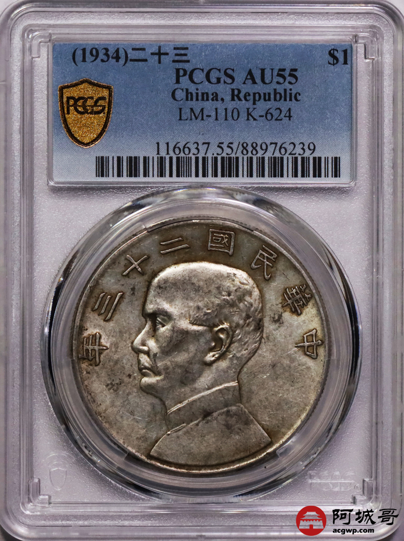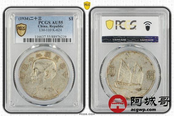 Lot:9 原味 黄油包浆 二十三年船洋 PCGS AU55