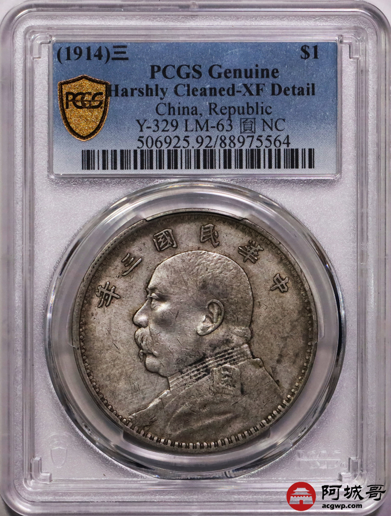 Lot:3 原味老包浆 三年大头壹圆 PCGS XF