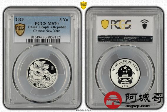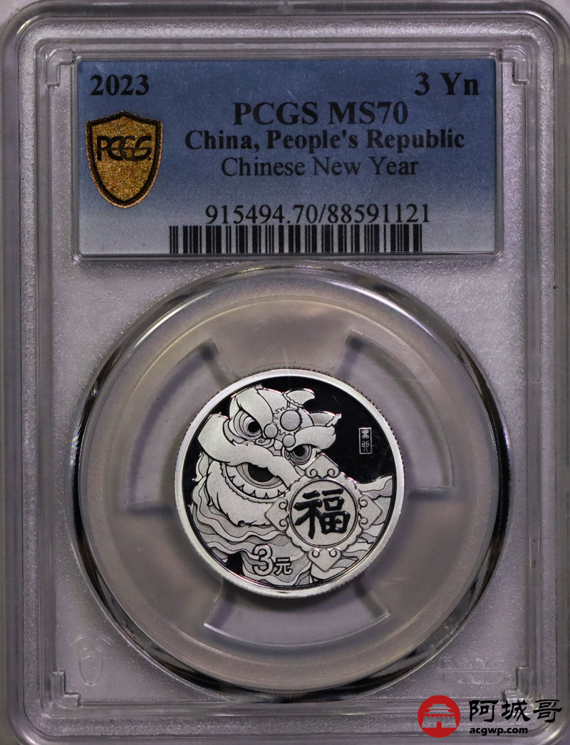 Lot:40 2023年福字3元银币 PCGS MS70