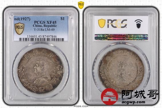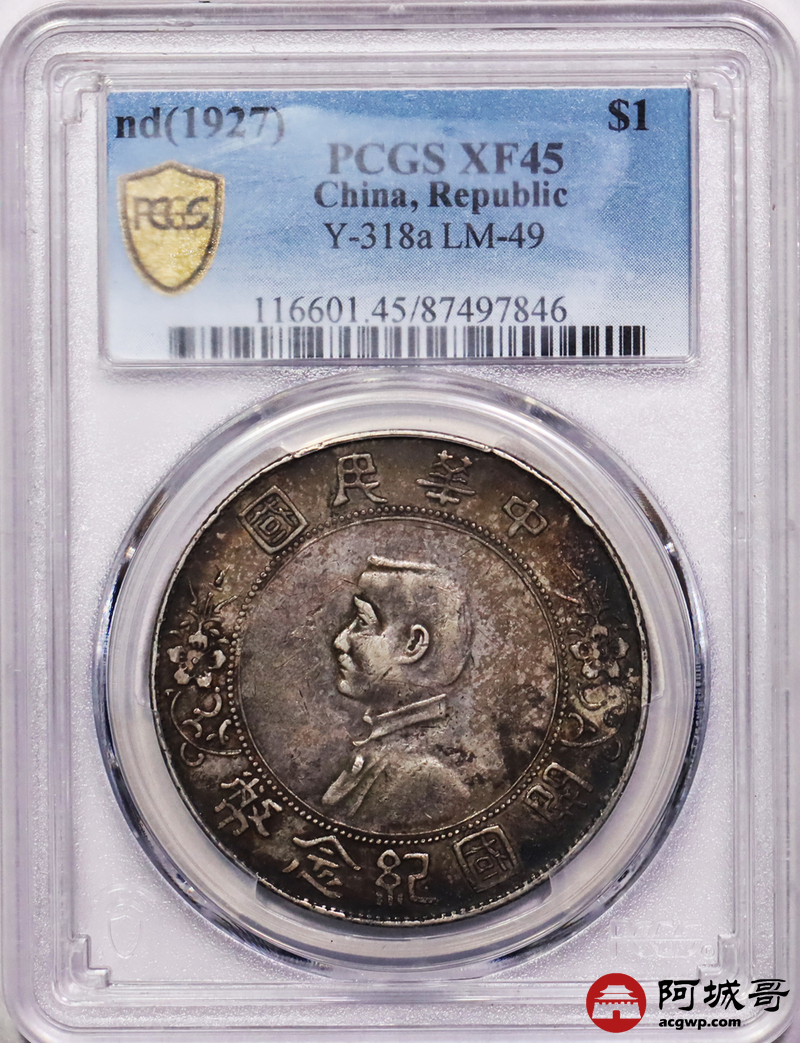 Lot:10 原汁原味 开国纪念币小头 PCGS XF45